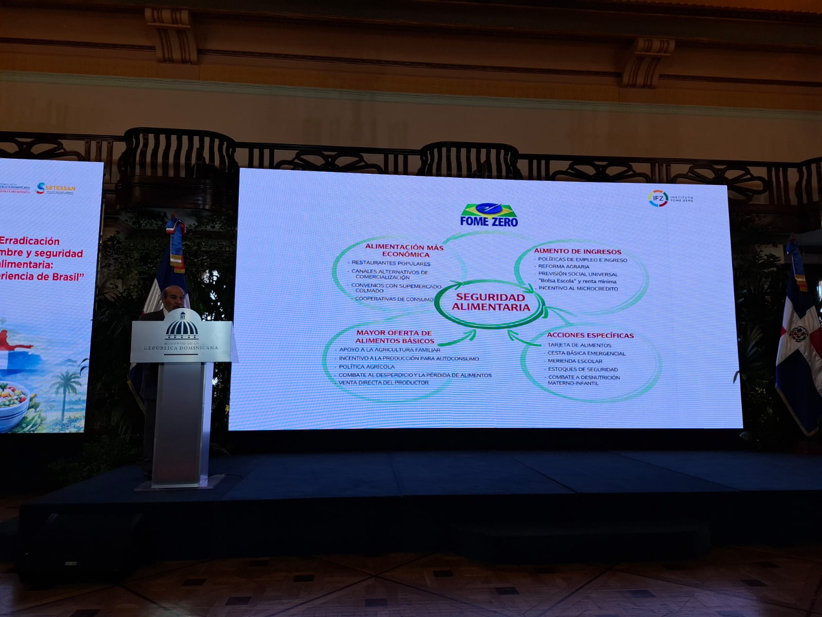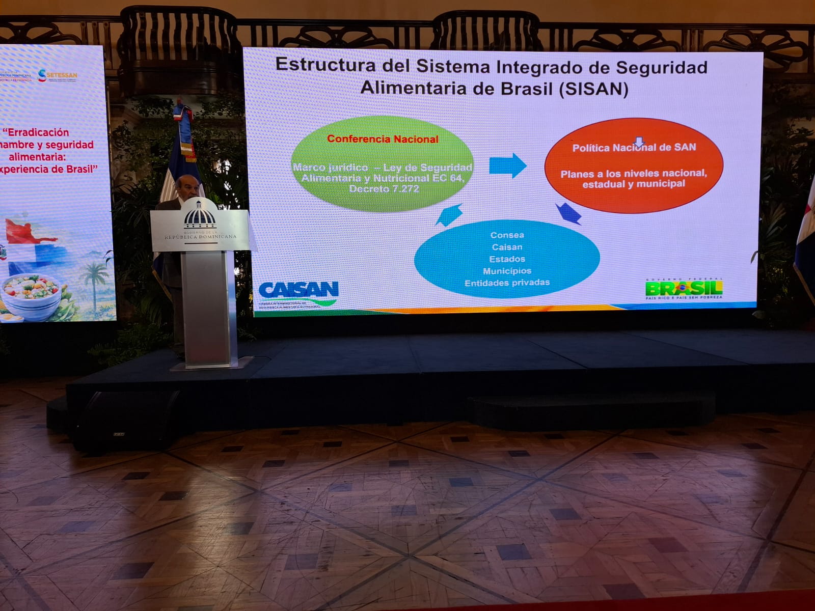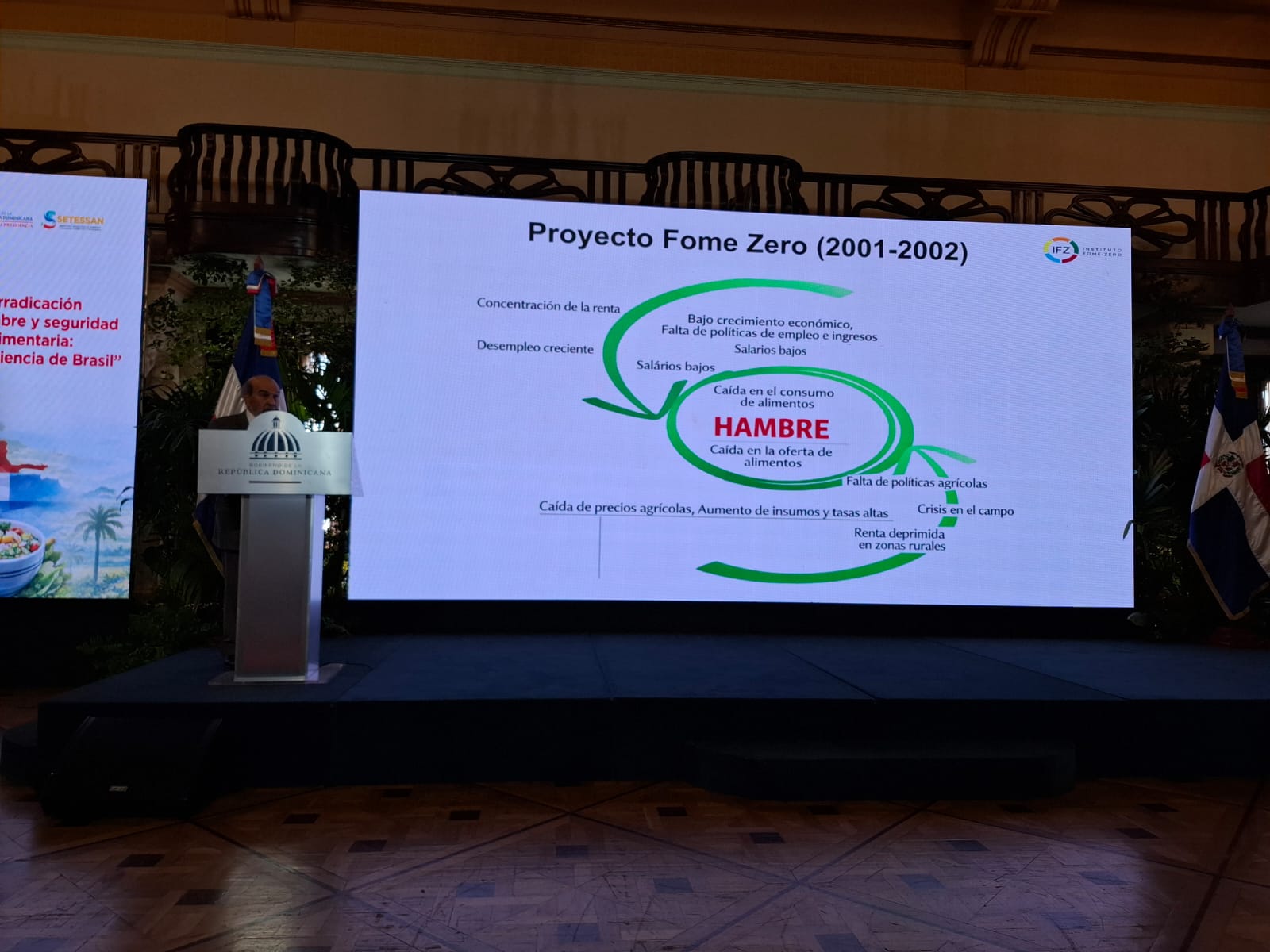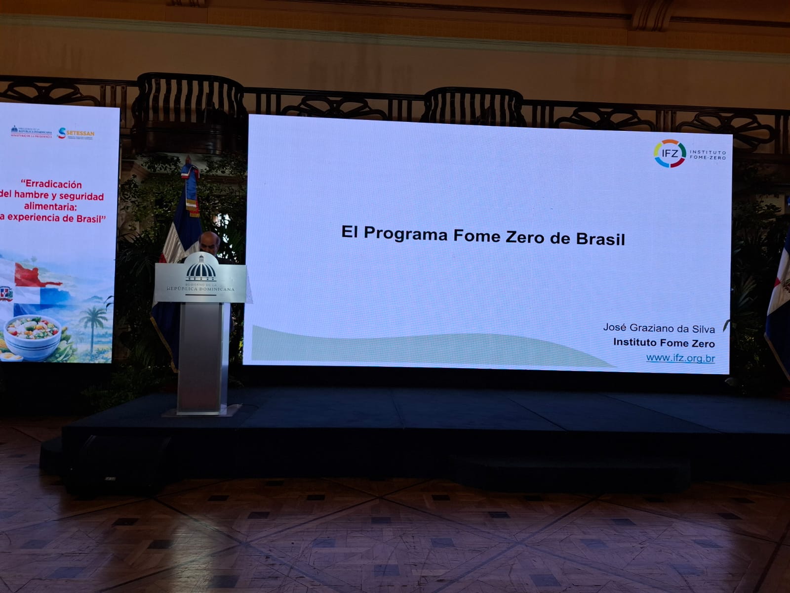 Pero el día más esperado de la semana fue la conferencia que Graziano da Silva ofreció a la Secretaría Técnica para la Soberanía y Seguridad Alimentaria del Ministerio de la Presidencia, en el Palacio de la República Dominicana.
