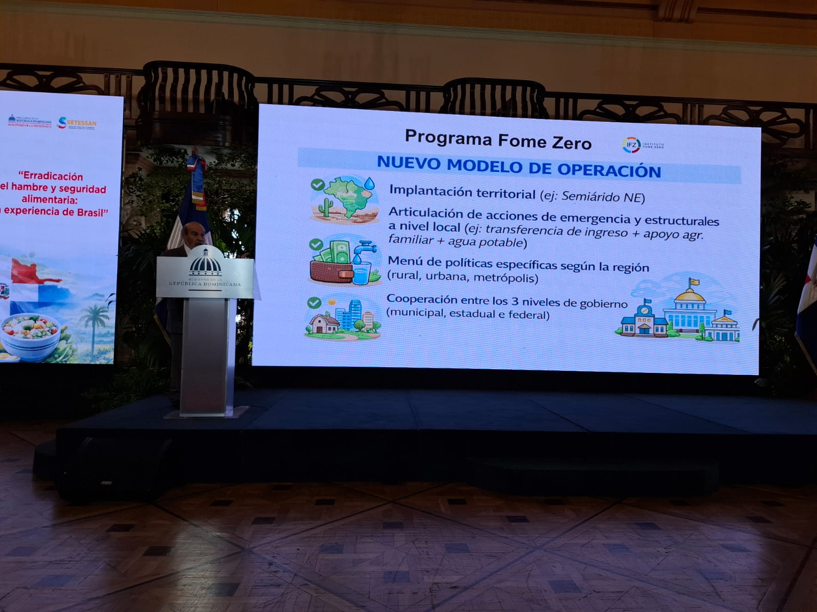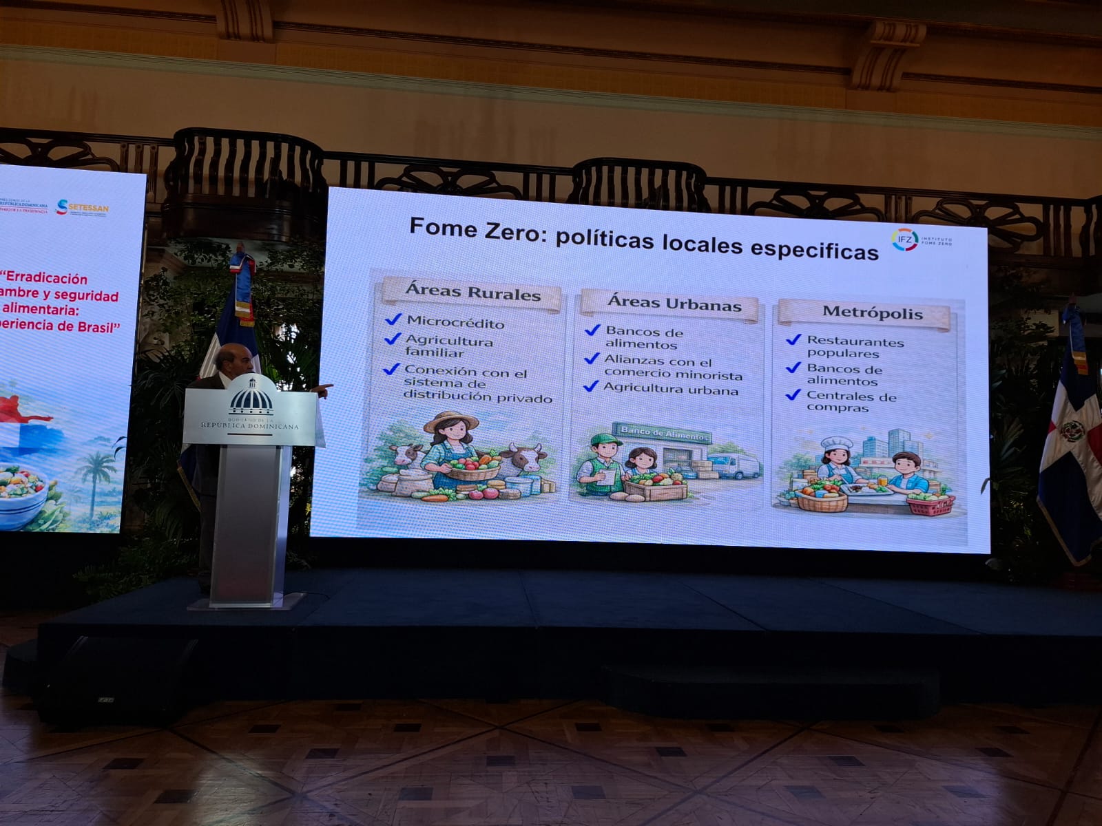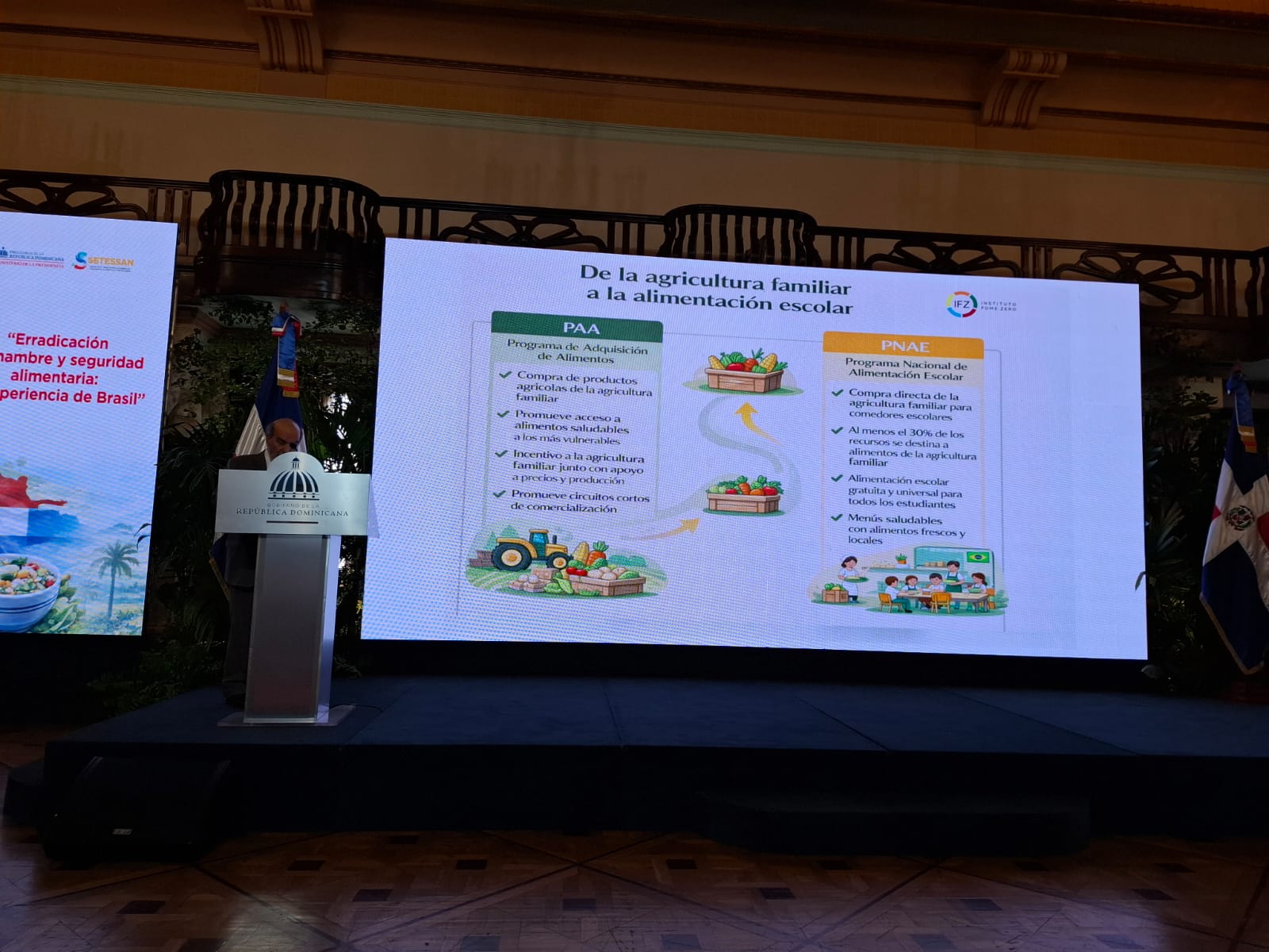 Pero el día más esperado de la semana fue la conferencia que Graziano da Silva ofreció a la Secretaría Técnica para la Soberanía y Seguridad Alimentaria del Ministerio de la Presidencia, en el Palacio de la República Dominicana.