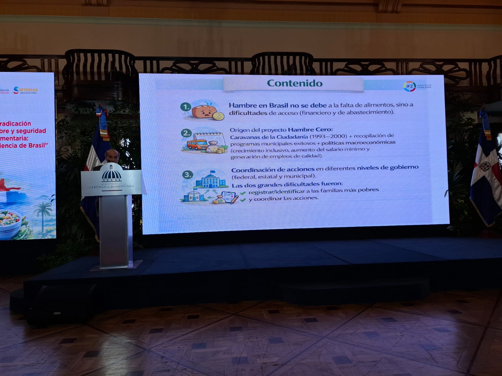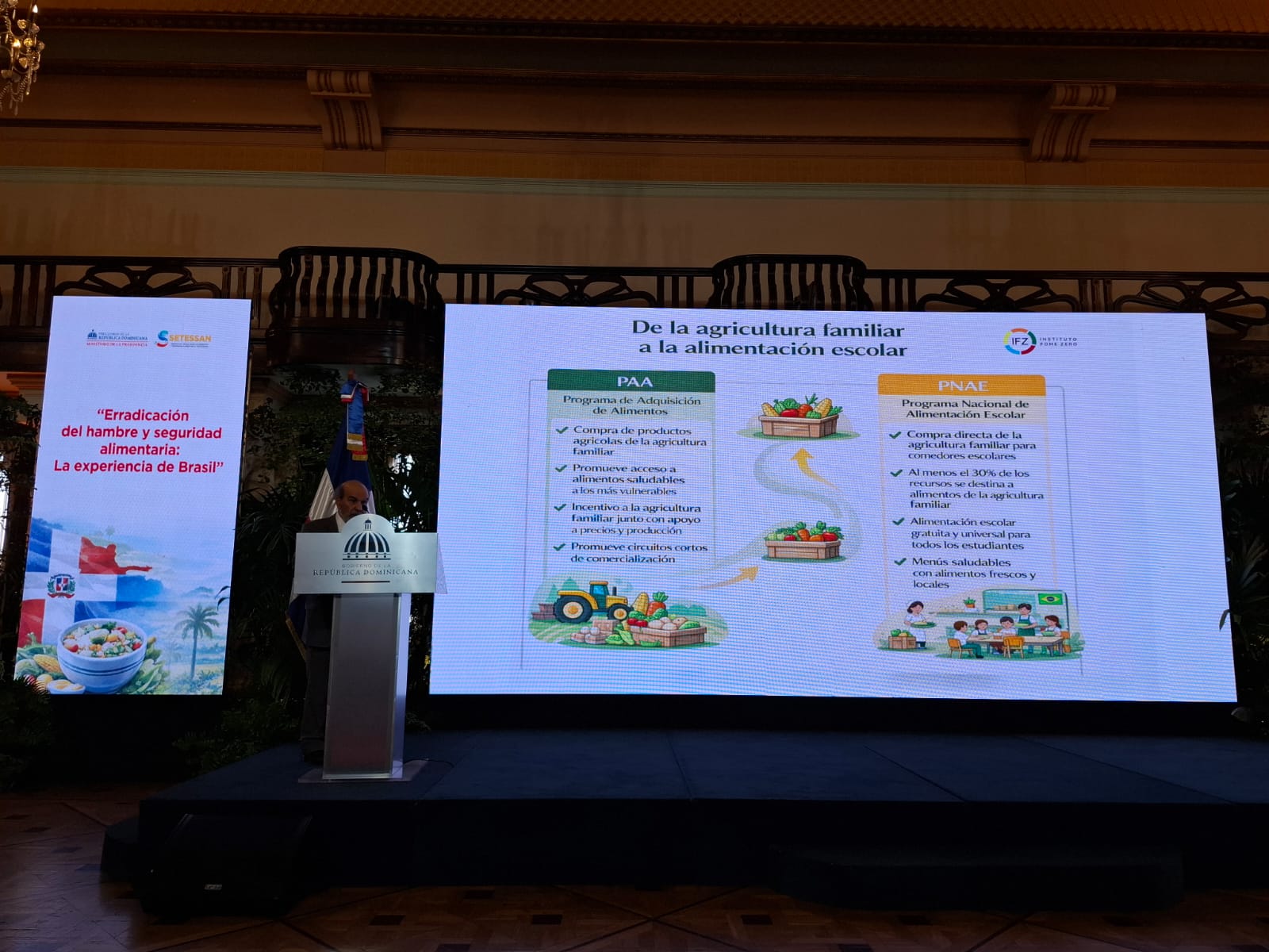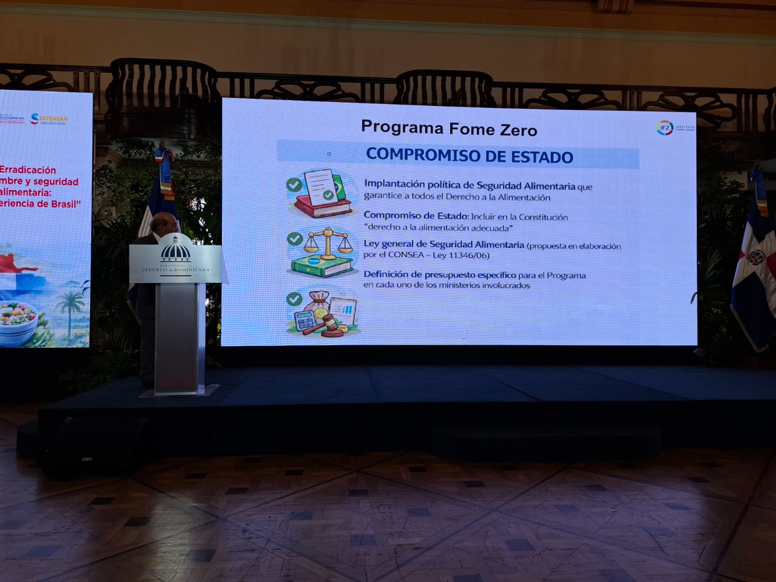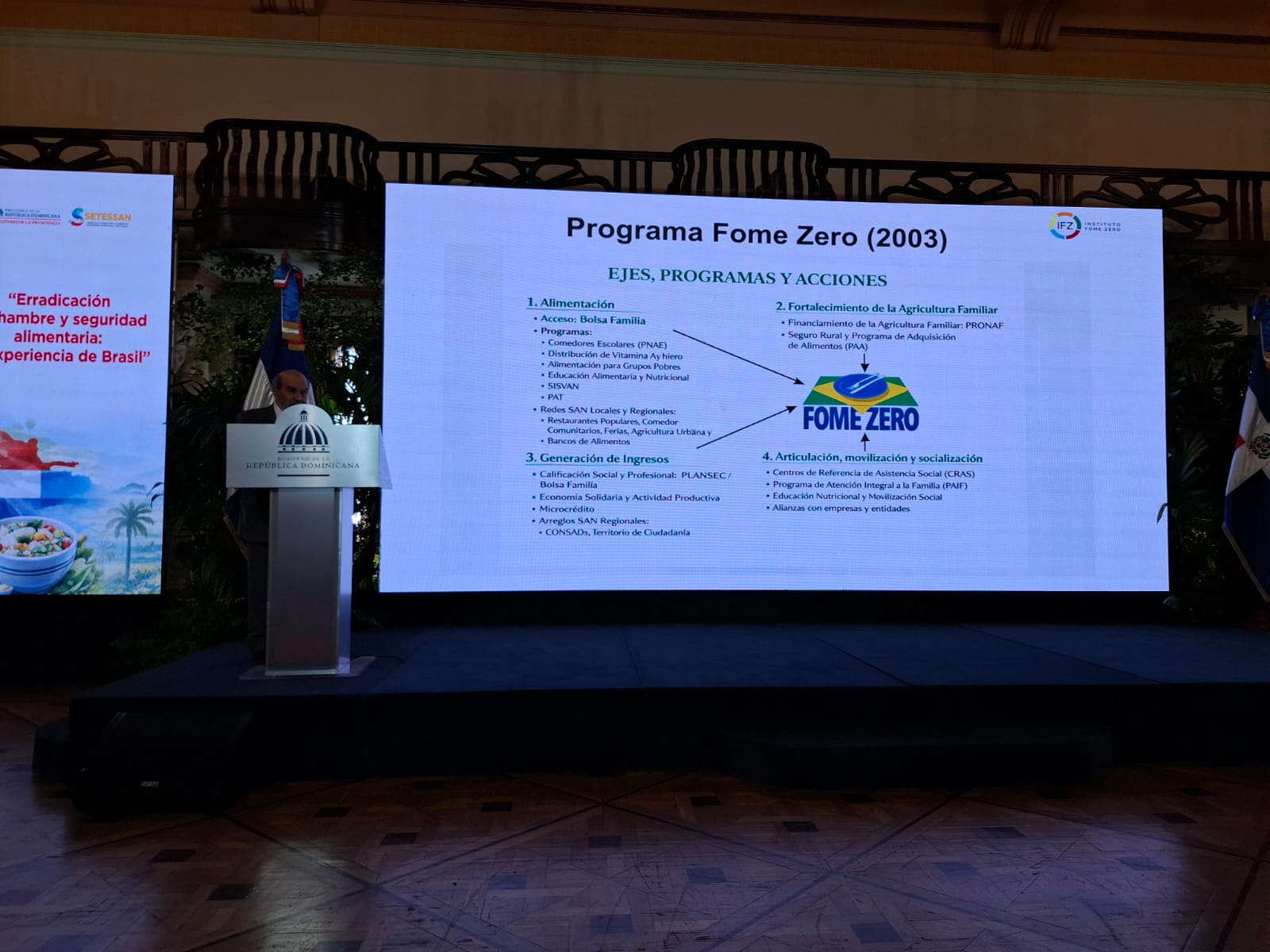 Pero el día más esperado de la semana fue la conferencia que Graziano da Silva ofreció a la Secretaría Técnica para la Soberanía y Seguridad Alimentaria del Ministerio de la Presidencia, en el Palacio de la República Dominicana.
